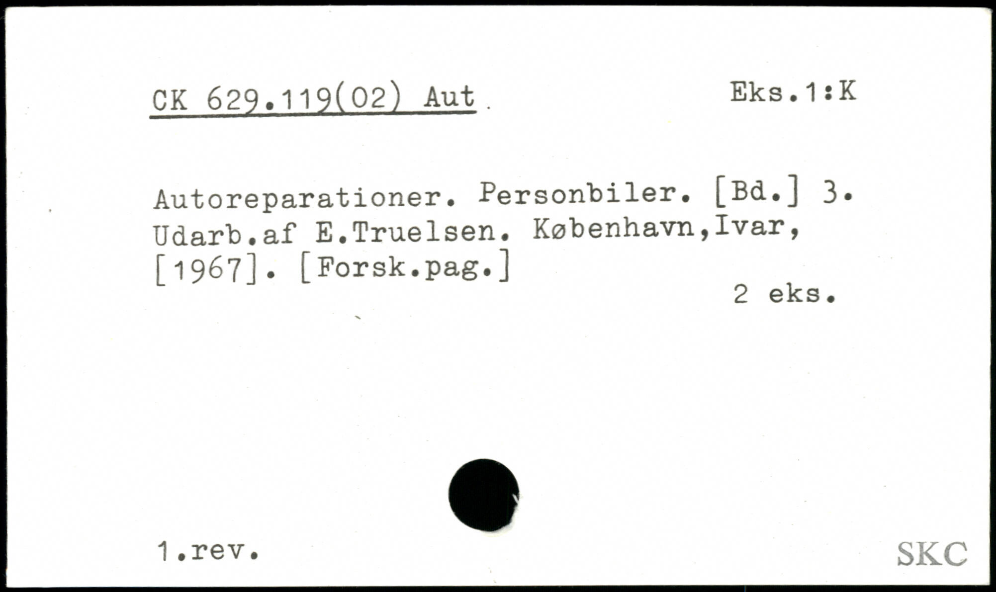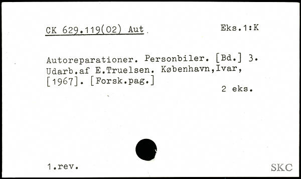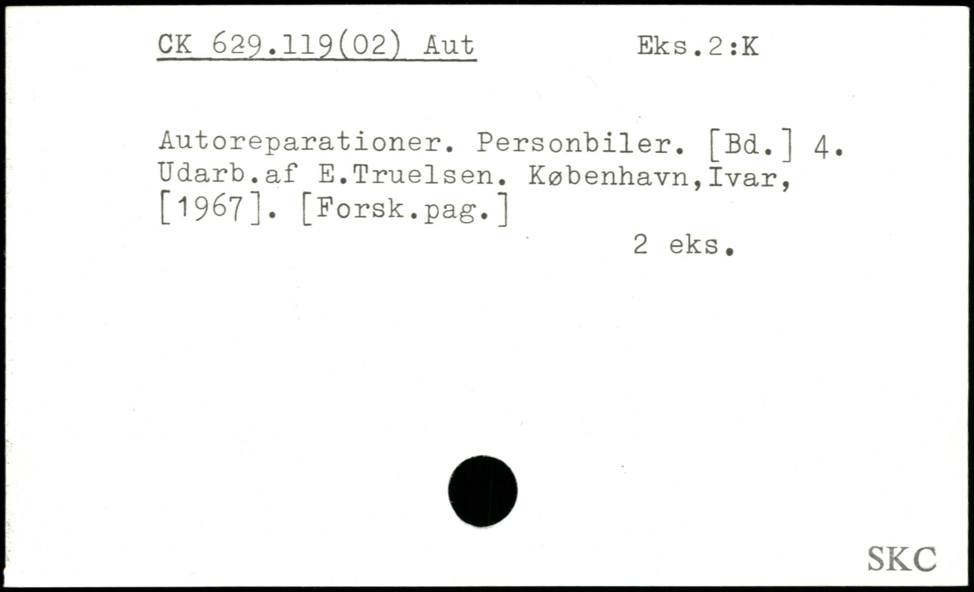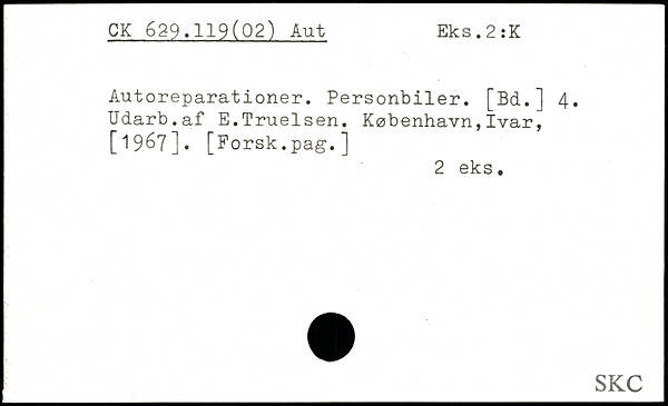 Autoreparationer. Personbiler. [Bd.] 4. Udarb.af E.Truelsen. København,Ivar,