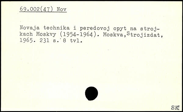 Novaja technika i peredovoj opyt na stroj-kach Moskvy (1954-1964). Moskva,strojizdat, 1965.