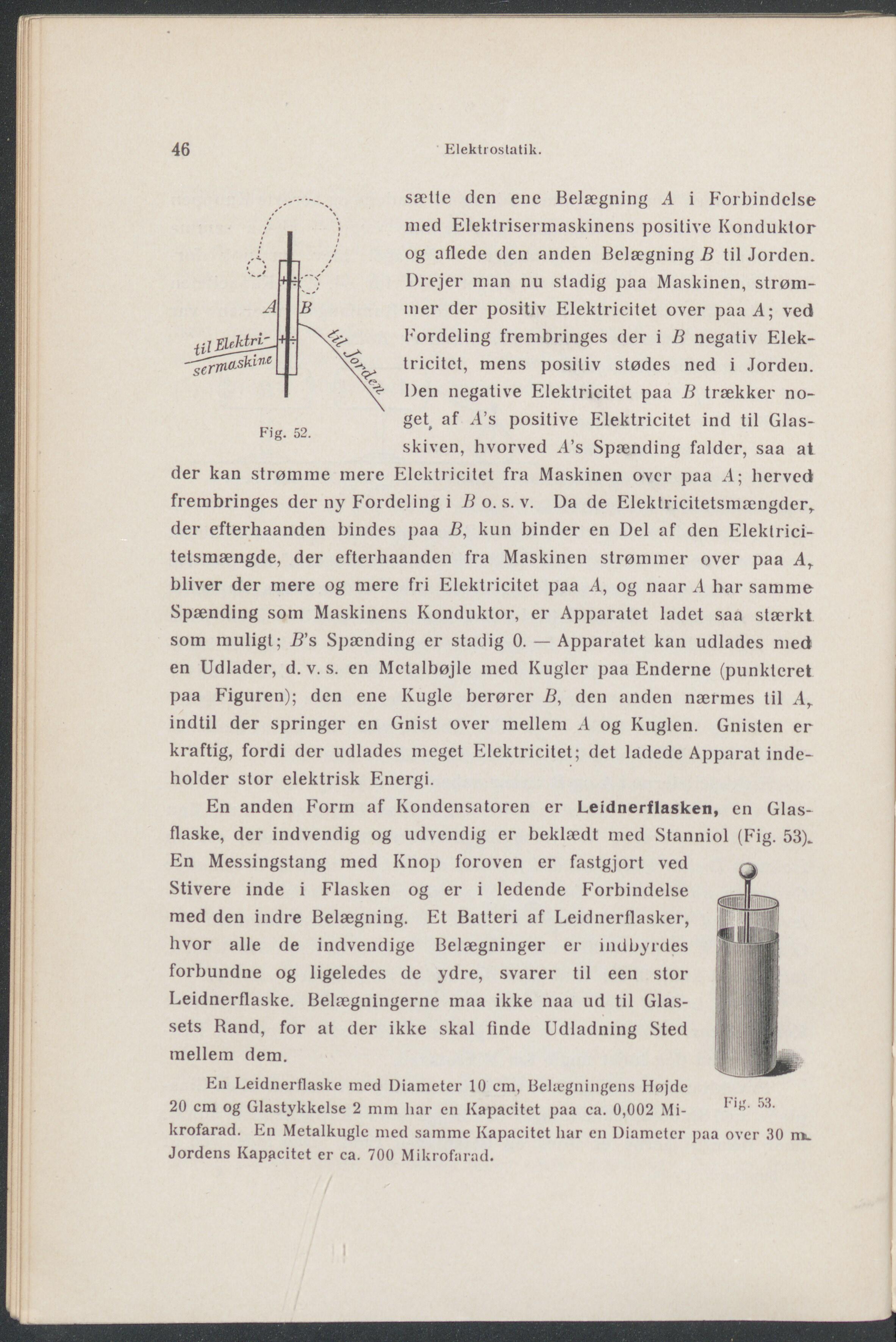 flaske, der indvendig og udvendig er beklædt med Stanniol (Fig. 53).