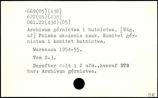 Archiwura gornictwa i hutnictwa. [TJdg. af] Polska akademia nauk. Komitet gor-nictwa i komitet hutnictwa.