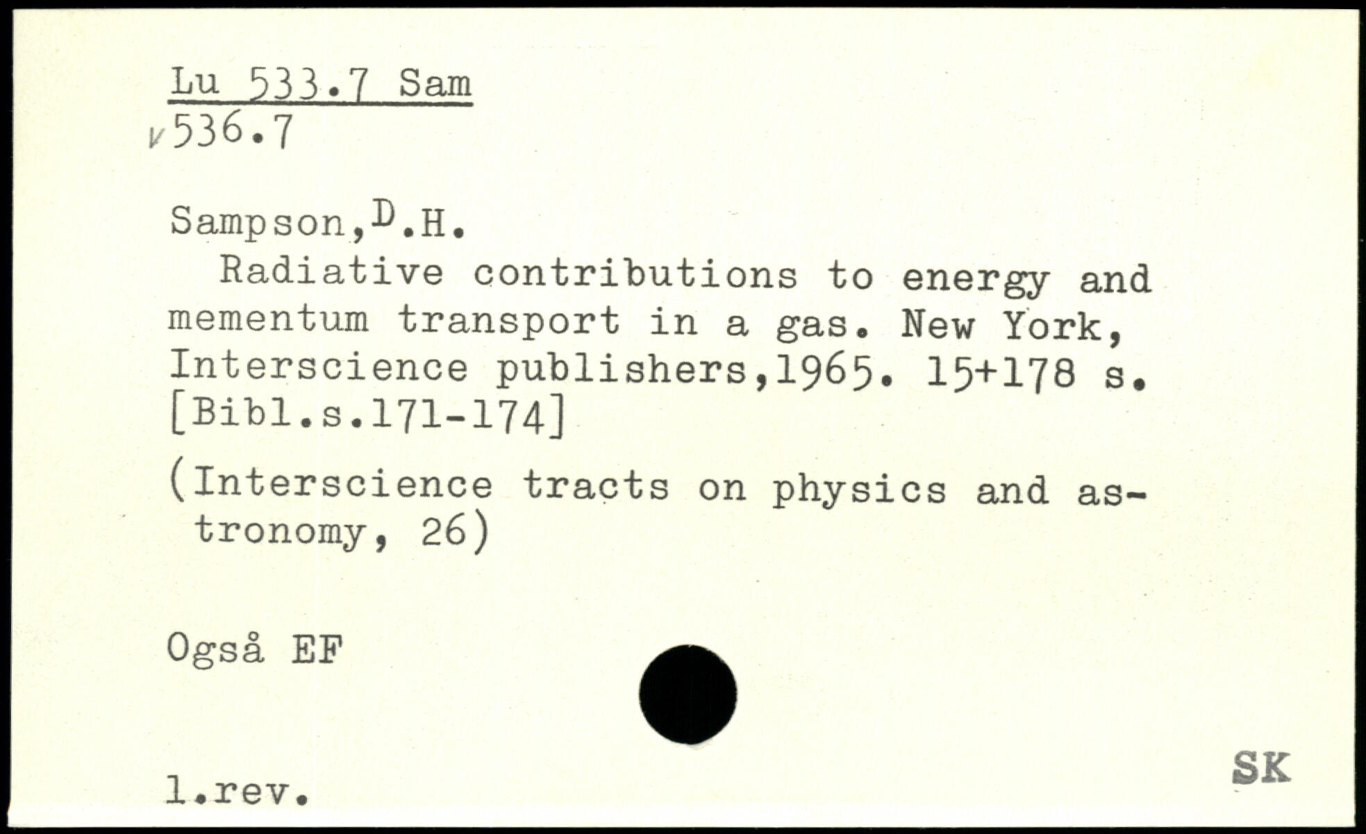 Sampson,L.h. Radiative contributions to energy and mementum transport in a gas.