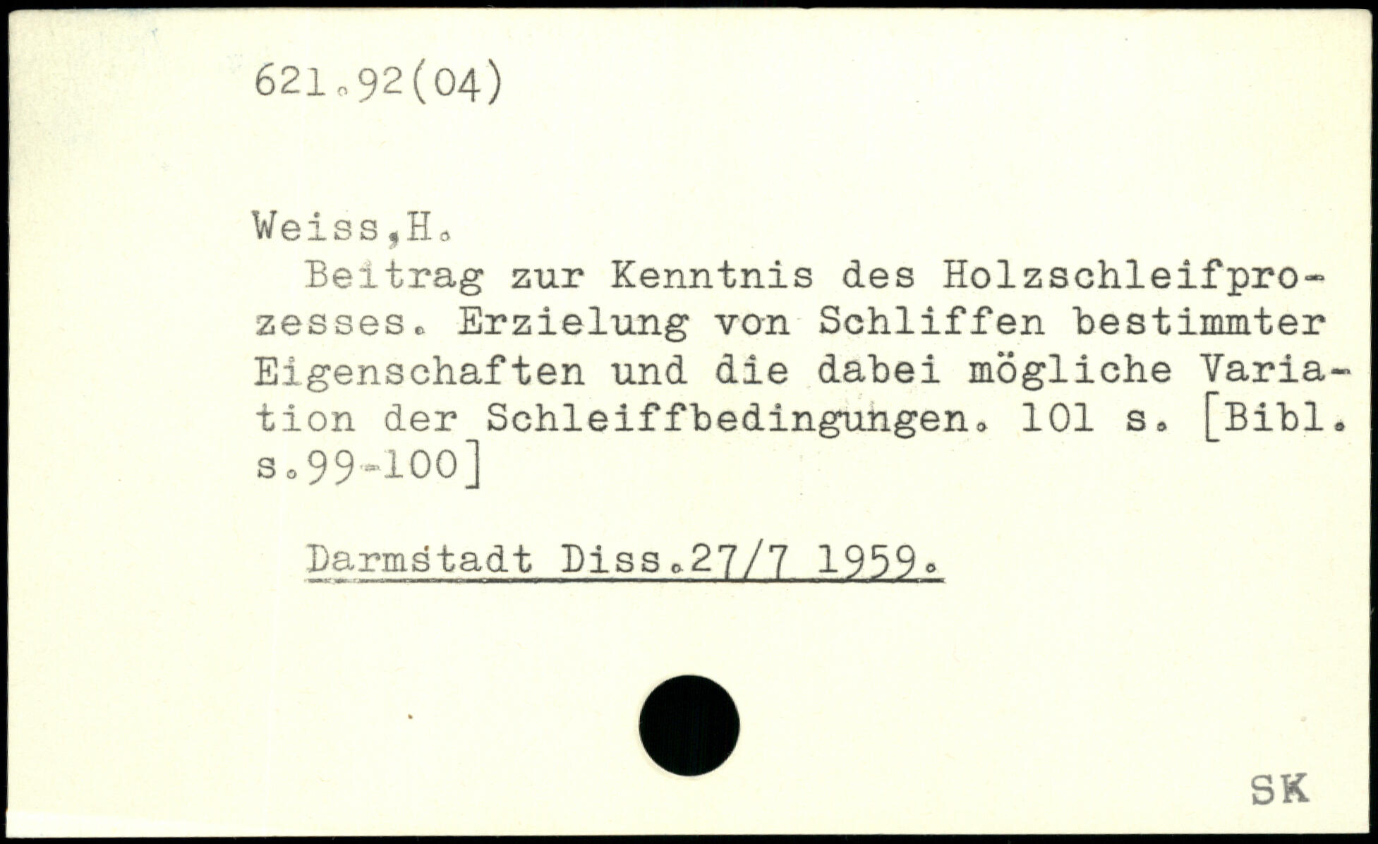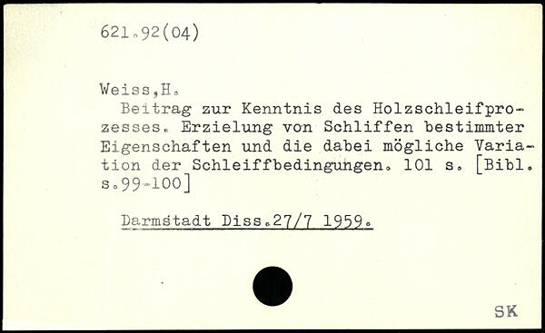 Beitrag zur Kenntnis des Holzschleifpro-zesses. Erzielung von Schliffen bestimmter Eigenschaften und die dabei mögliche Variation der Schleiffbedingungen