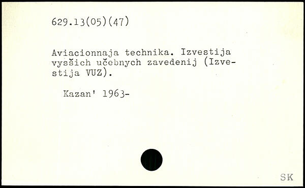Aviacionnaja technika. Izvestija vyssich ucebnych zavedenij (izve-stija VTJZ). Kazan' 1963-