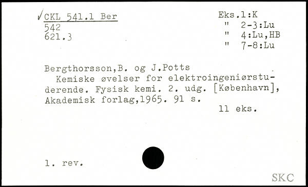 Kemiske øvelser for elektroingeniørstuderende. Fysisk kemi.