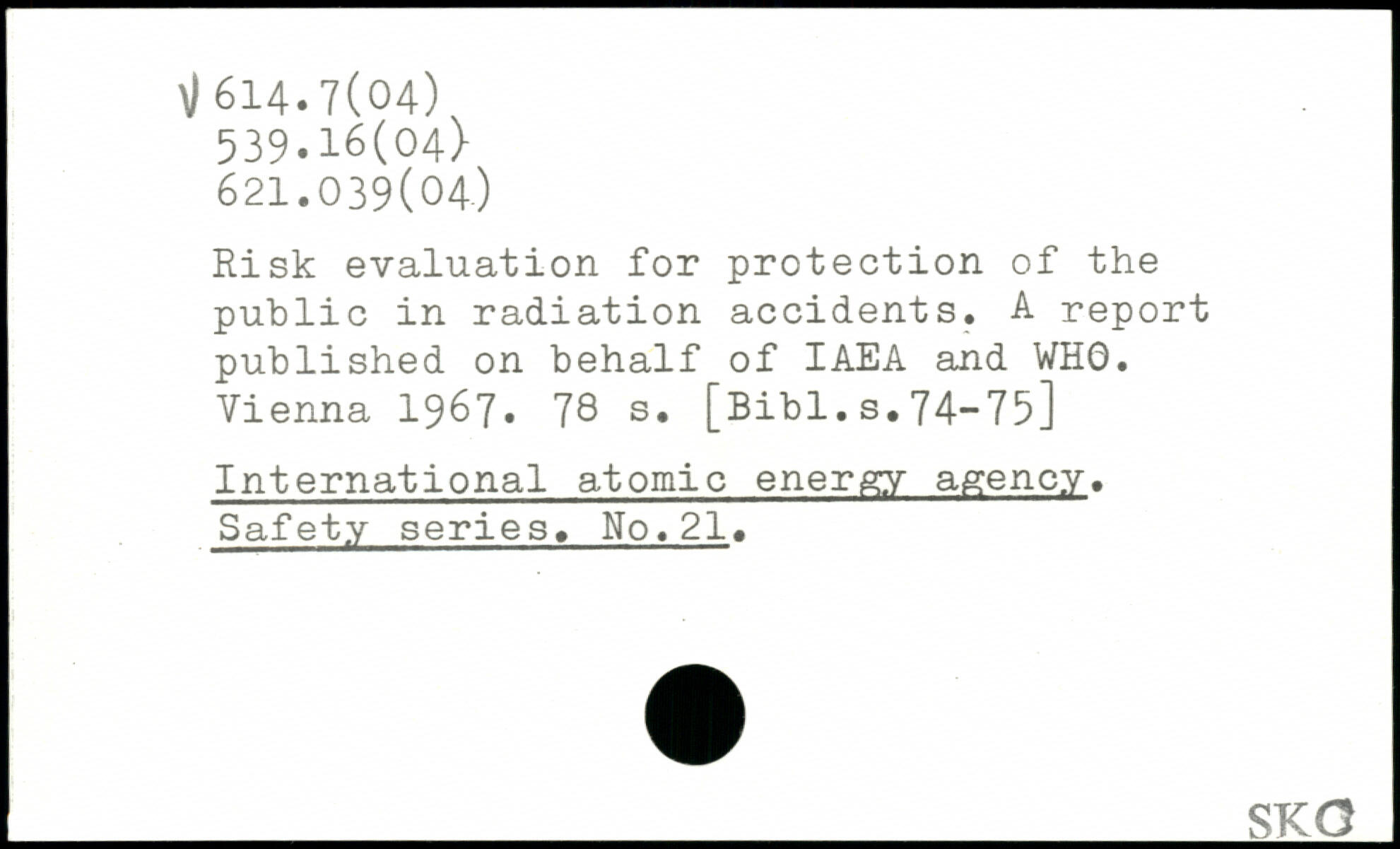 Risk evaluation for protection of the public in radiation accidents. A report published on behalf of IAEA and WHO. Vienna 1967