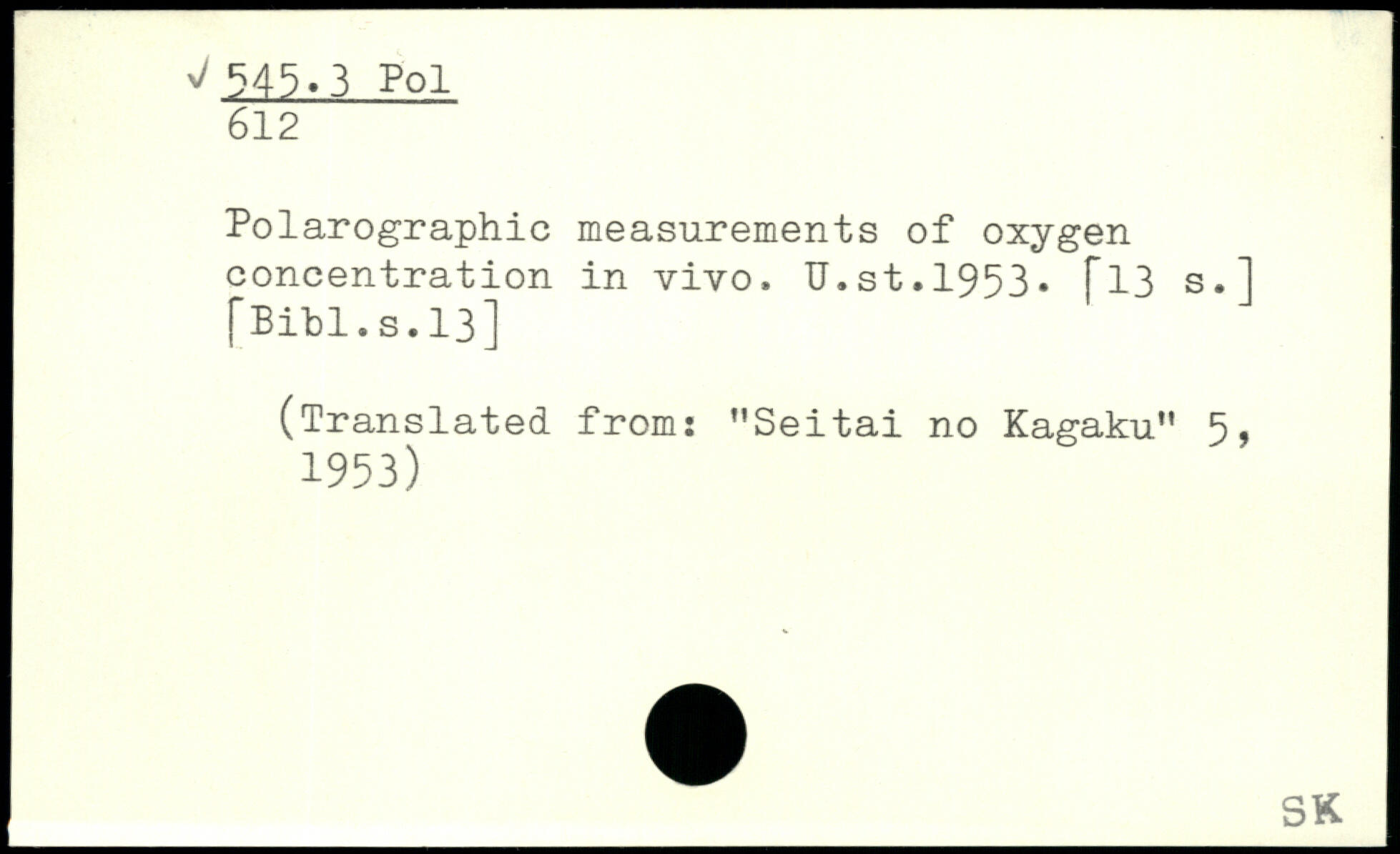 Polarographic measurements of oxygen concentration in vivo, U.st.1953. f