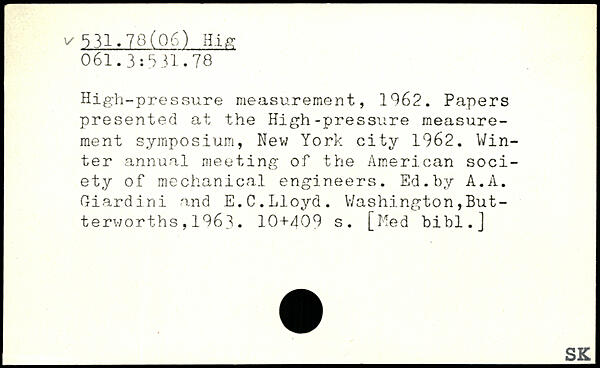 High-pressure measurement, 1962. Papers presented at the High-pressure measurement symposium, New York city 1962. Winter annual meeting of the American society of mechanical engineers. Ed.by A.A. Giardini and E.C.Lloyd.