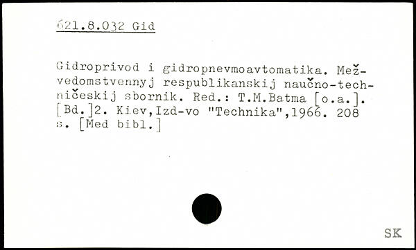 Gidroprivod i gidropnevmoavtomatika. Mez-vedoms tveriny j respublikanskij naucno-tech-niceskij sbornik. Red.: T.M.Batma [o.a.].