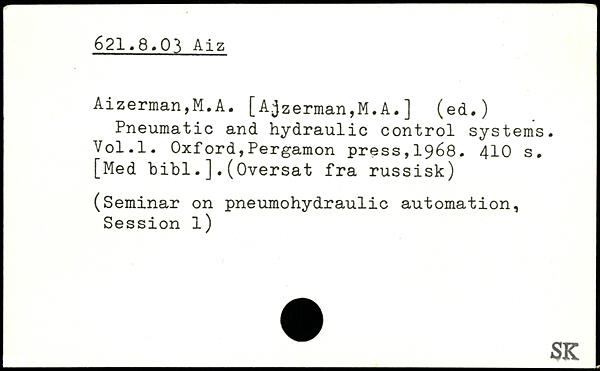 Aizerman,M.A. [ Ajzerman,M.A.] (ed.) Pneumatic and hydraulic control systems.
