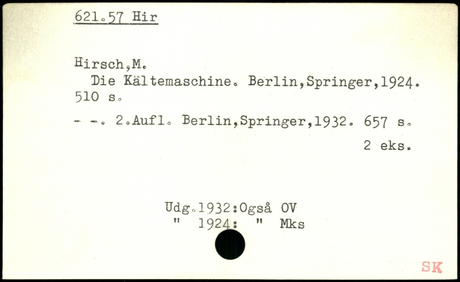 Die Kältemaschine, Berlin,Springer,1924, 510 So - 2.Auflo Berlin,Springer,1932. 657 S,