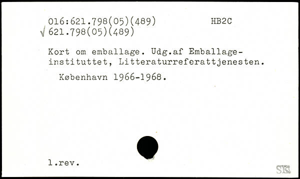 Kort om emballage. Udg.af Emballage-instituttet , Litteraturreferattjenesten.