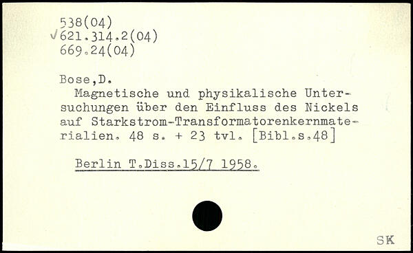 Magnetische und physikalische Untersuchungen über den Einfluss des Nickels auf Starkstrom-Transformatorenkernmate-rialien