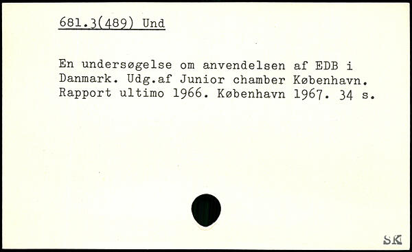En undersøgelse om anvendelsen af EDB i Danmark. Udg.af Junior chamber København. Rapport ultimo 1966.