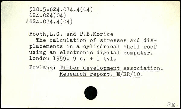 The calculation of stresses and displacements in a cylindrical shell roof using an electronic digital computer.