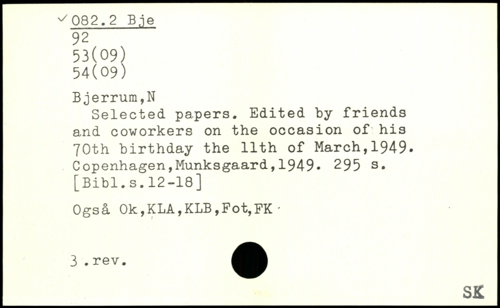ForsideBøgerSelected papers. Edited b… the 11th of March,1949.