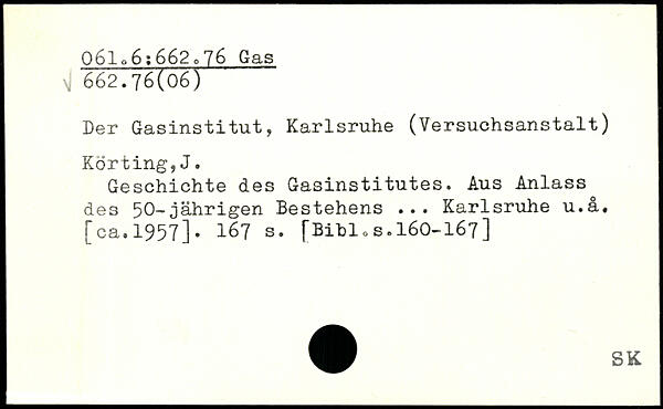 Der Gasinstitut, Karlsruhe (Versuchsanstalt) Körting,J. Geschichte des Gasinstitutes. Aus Anlass des 50-jährigen Bestehens ... Karlsruhe u.a#