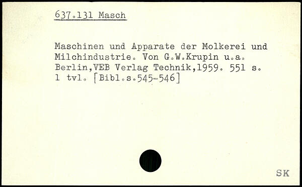 Maschinen und Apparate der Molkerei und Milchindustrieo Yon GoWoKrupin u0a.