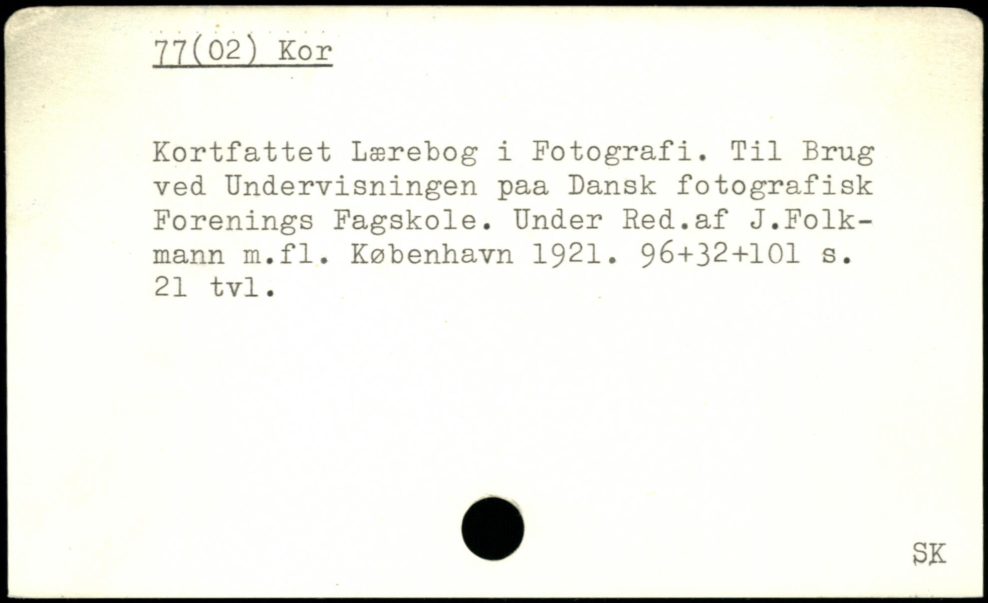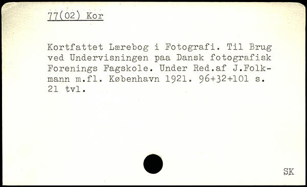Kortfattet Lærebog i Fotografi. Til Brug ved Undervisningen paa Dansk fotografisk Forenings Fagskole. Under Red.af J.Folk-mann m.fl.