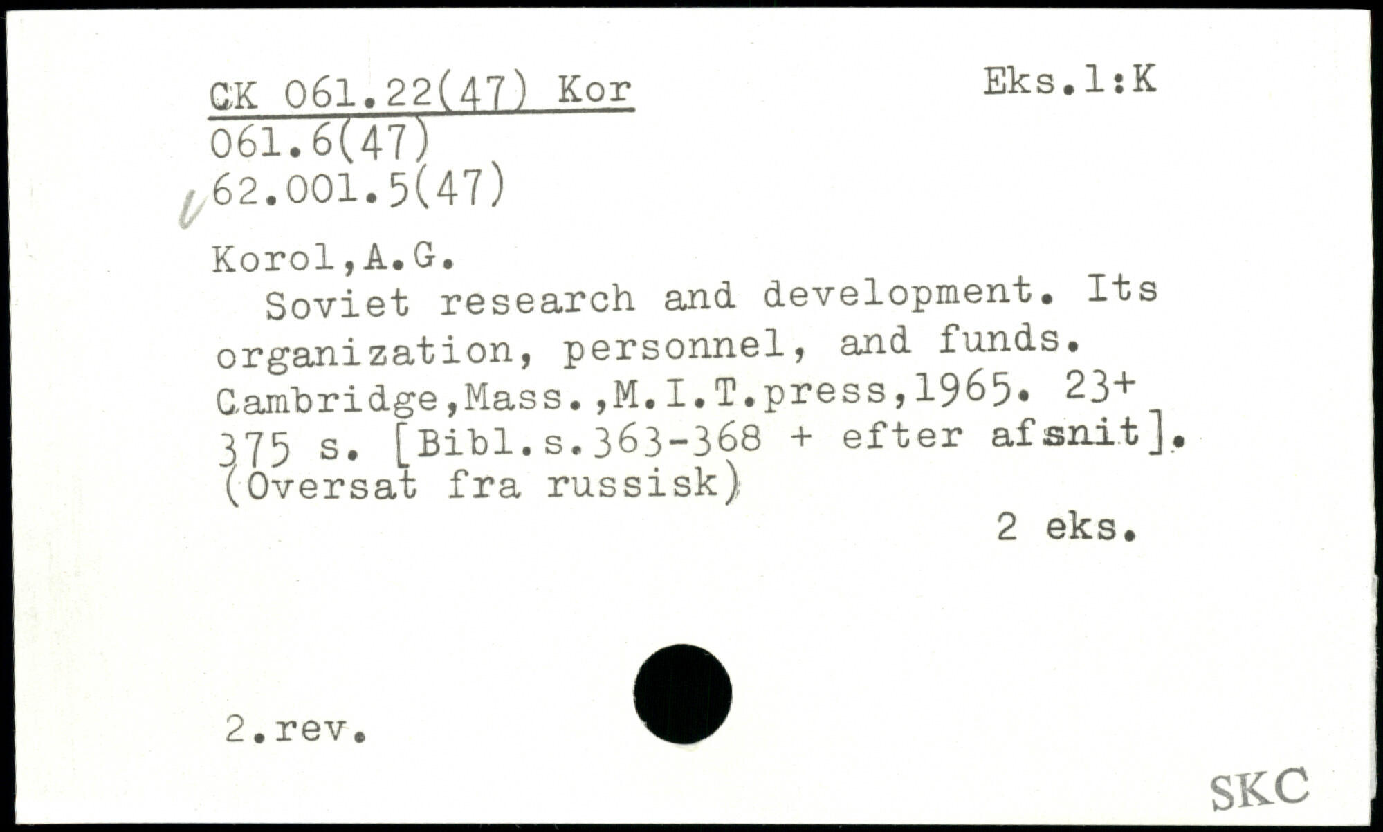 Soviet research and development. Its organization, personnel, and funds.