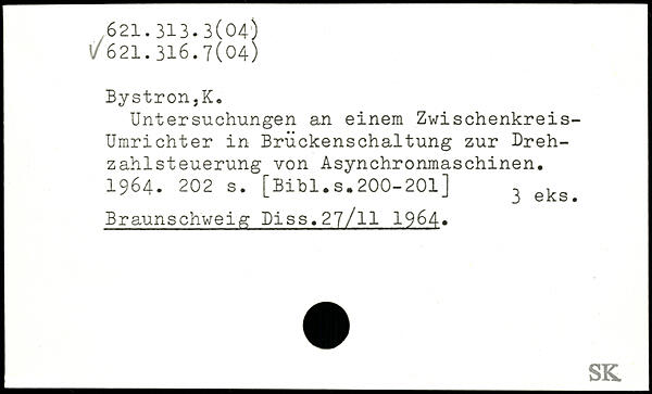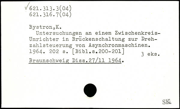 Untersuchungen an einem Zwischenkreis-Umrichter in Brückenschaltung zur Drehzahlsteuerung von Asynchronmaschinen. 1964.