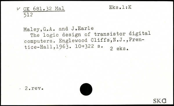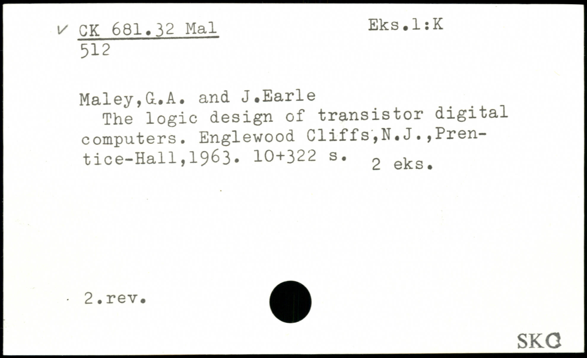 Maley,a.A. and J.Earle The logic design of transistor digital computers. Englewood Cliffs>N.J.?Pren-tice-Hall,19^3.