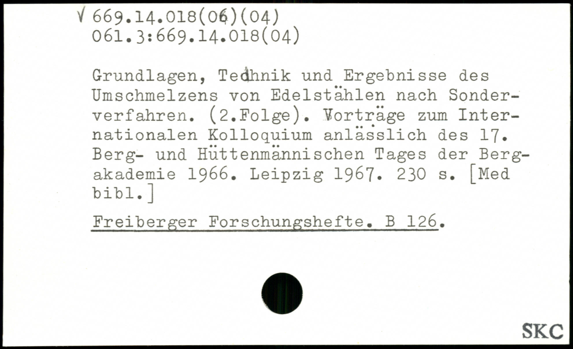 Grundlagen, Tedhnik und Ergebnisse des Umschmelzens von Edelstahlen nach Sonderverfahren. (2.Folge). Vorträge zum Internationalen Kolloquium anlässlich des 17. Berg- und Hüttenmännischen Tages der Bergakademie 1966.