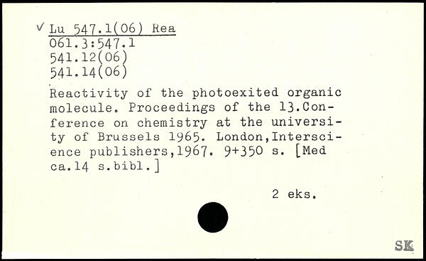 Reactivity of the photoexited organic molecule. Proceedings of the 13.Conference on chemistry at the university of