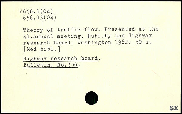Theory of traffic flow. Presented at the 41.annual meeting.