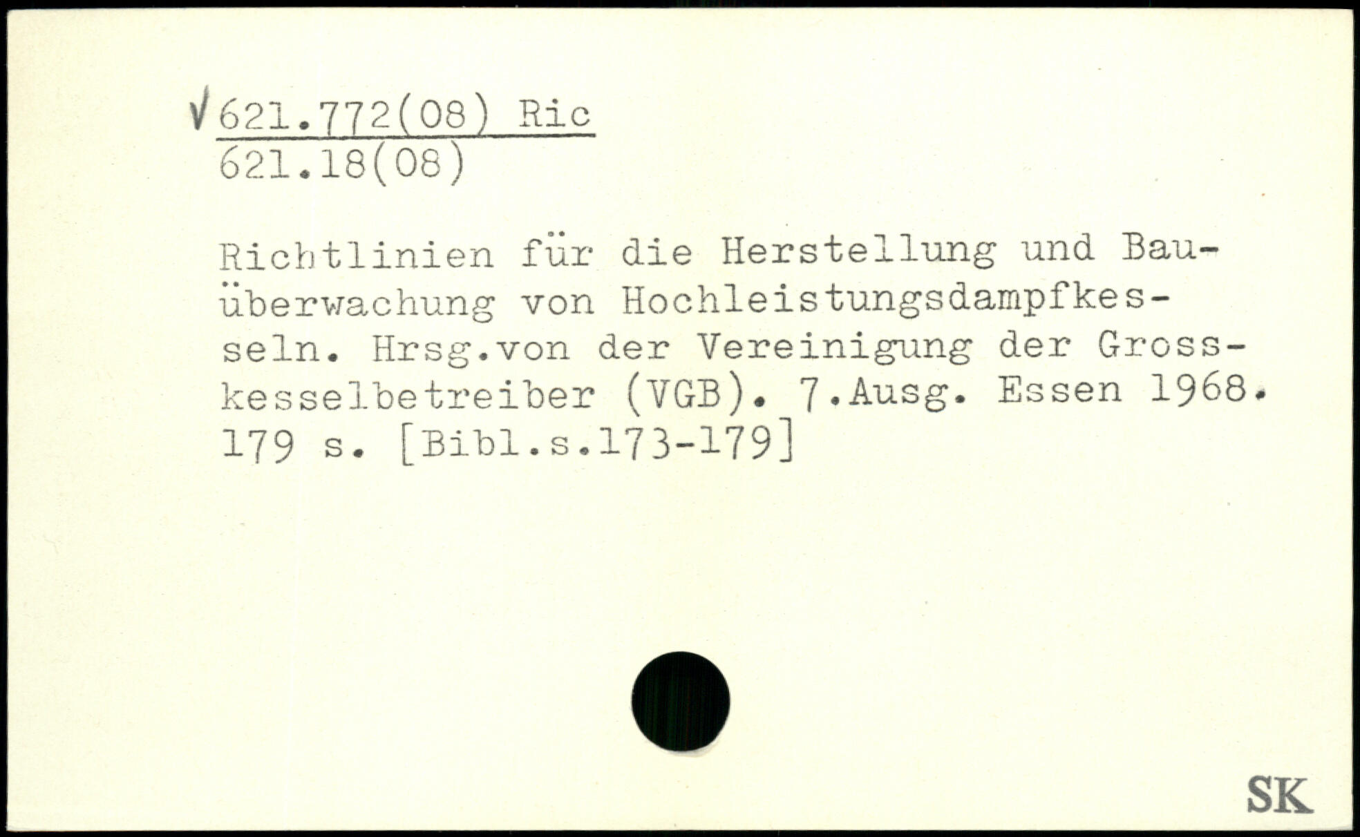 Richtlinien für die Herstellung und Bau-ubervachung von Hochleistungsdampfkesseln. Hrsg.von der Vereinigung der Gross-kesselbetreiber (VGB). 7.Ausg.