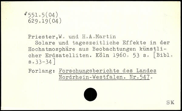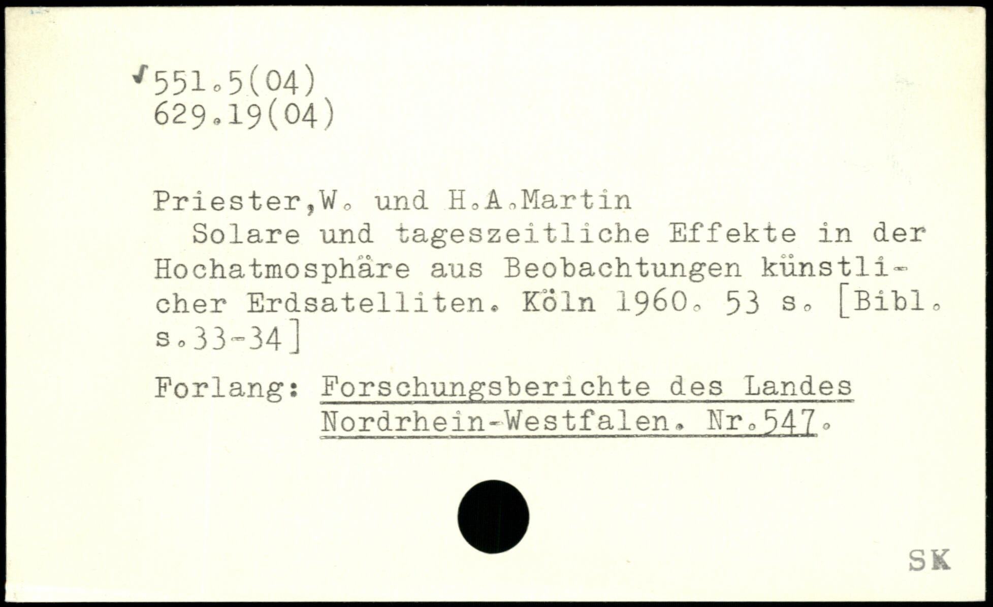 Priester,W,, und H,A,Martin Solare und tageszeitliche Effekte in der Hochatmosphäre aus Beobachtungen künstlicher Erdsatelliten