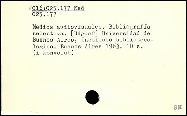 Midies audiovisuales. Bibliografîa Belectiva. [üdg.afj Universidad de Buenos Aires, Instituto biblioteco-logico. Buenos Aires 1963.