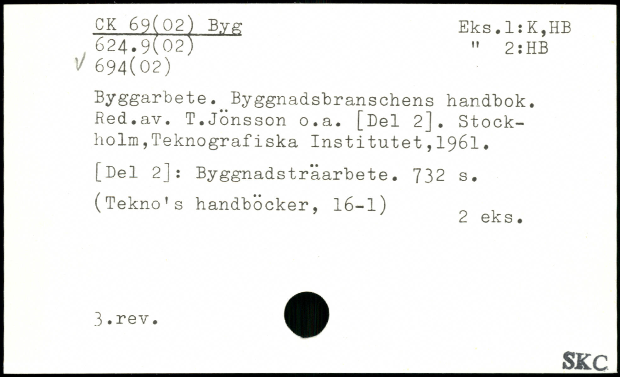 Byggarbete.^Byggnadsbranschens handbok. Red.av. T.Jönsson o.a. [Del 2]. Stockholm, Tekno gr af i ska Institutet,1961.