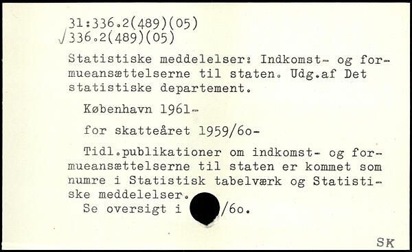 Statistiske meddelelsers Indkomst- og formueansættelserne til staten. Udg.af Det statistiske departement.