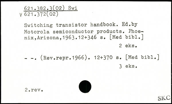 Switching transistor handbook. Ed.by Motorola semiconductor products.