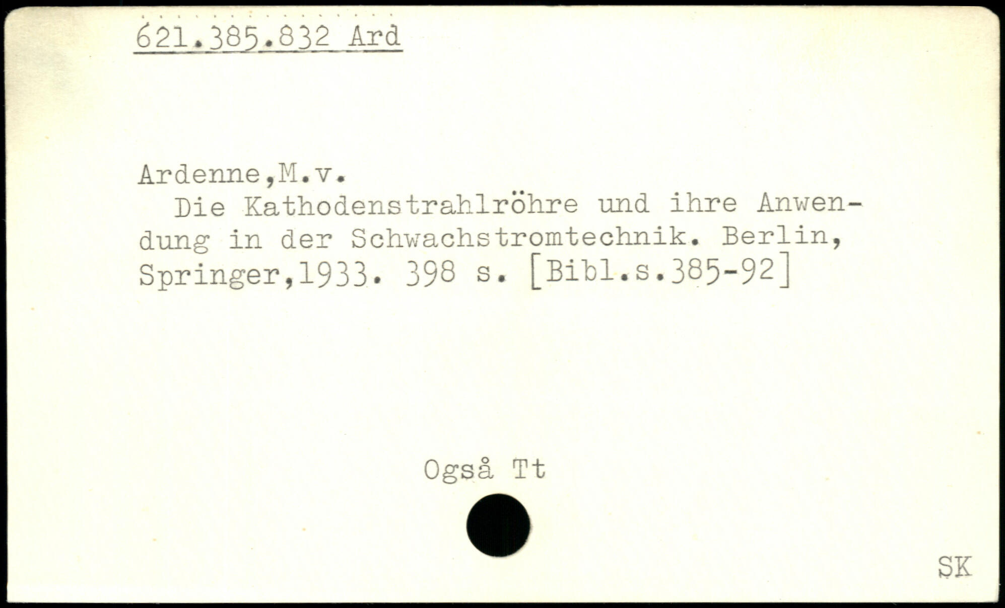 wm .............. q 621.385.832 Ard Ardenne,M.v. Die Kathodenstrahlröhre und ihre Anwendung in der Schwachstromtechnik.