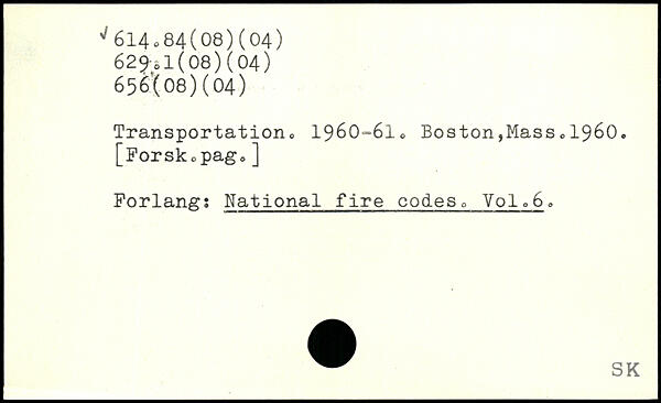 Transportation o 1960=6io Boston,Mass01960. [Forskopago] Forlang: National fire codeso Yolo6<