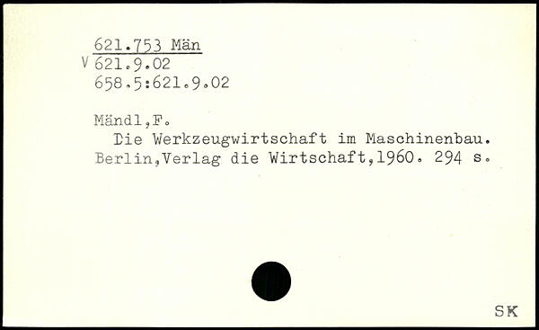 Mandl?Fo Eie Werkzeugwirtschaft im Maschinenbau.