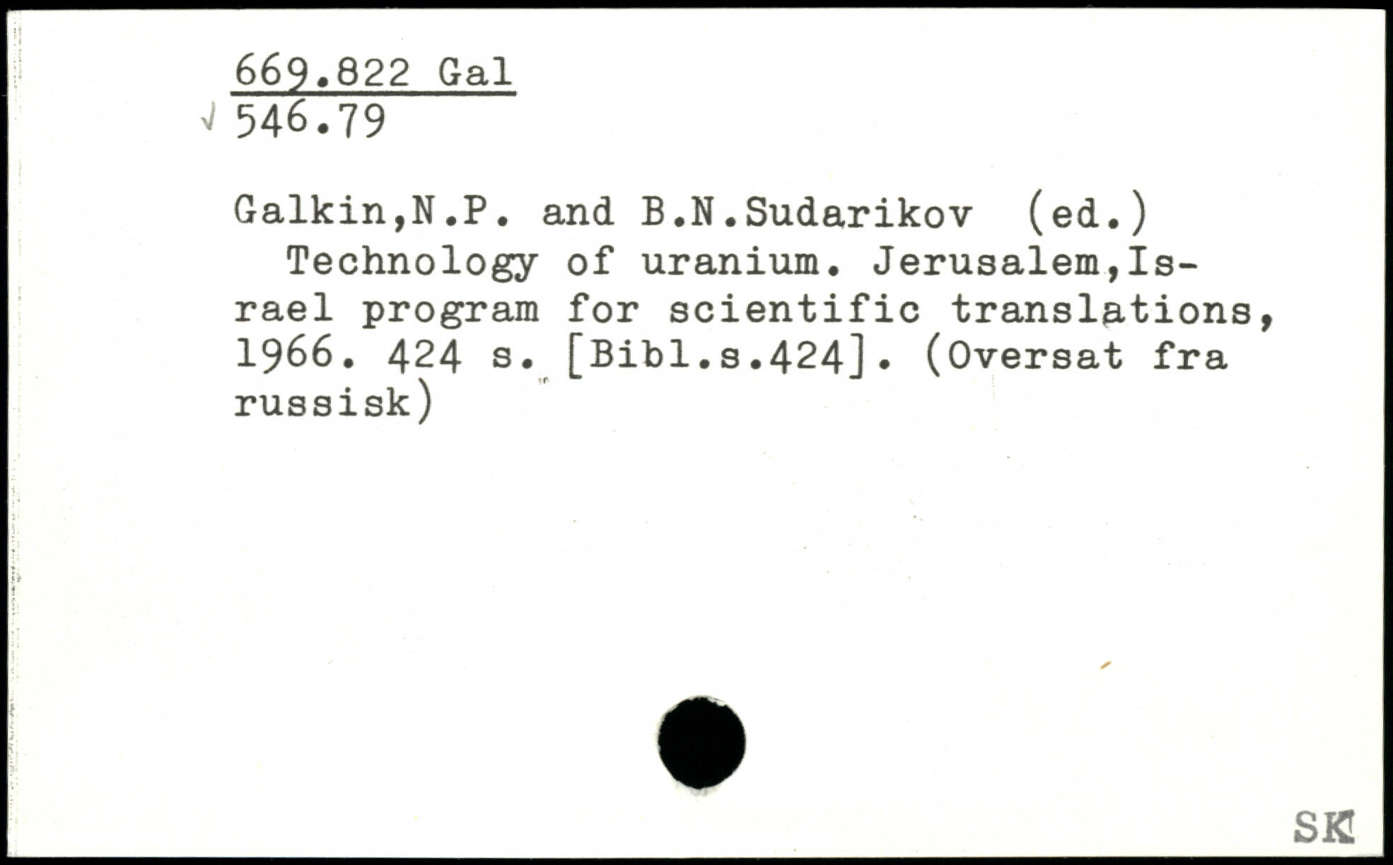 Technology of uranium. Jerusalem,Israel program for scientific translations, 1966.
