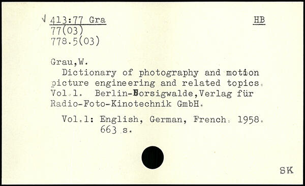 Dictionary of photography and motion picture engineering and related topicse Void. Berlin-Borsigwalde,Verlag für Radio-Foto-Kinotechnik GmbH,, Void: