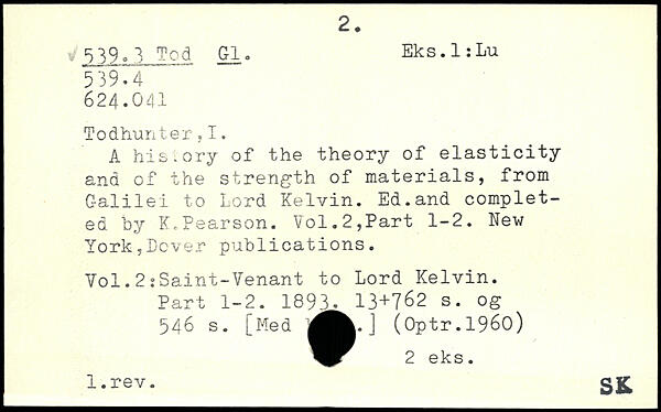 A history of the theory of elasticity and of the strength of materials, from Galilei to Lord Kelvin. Ed.and completed by K.Pearson.