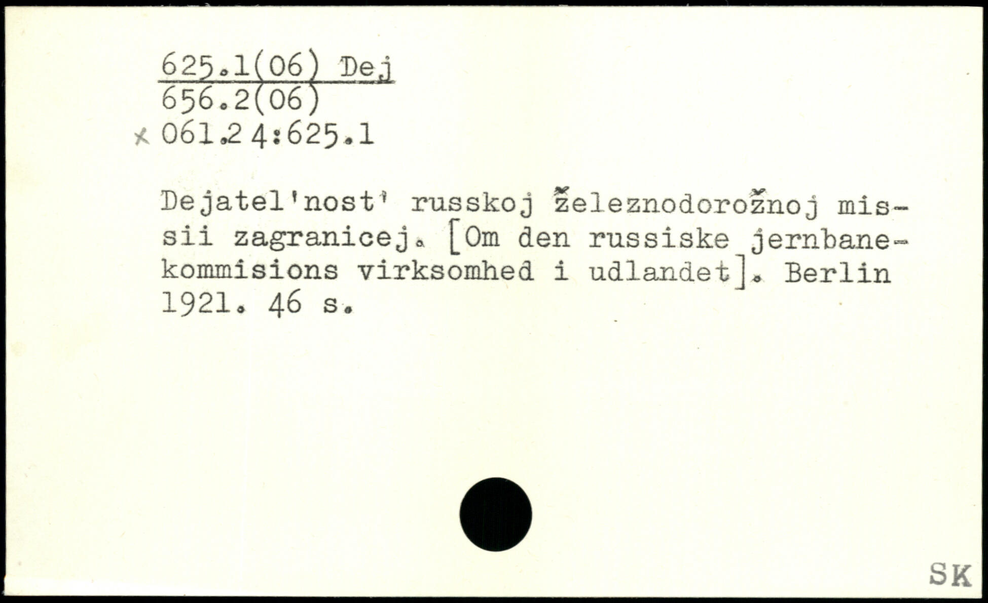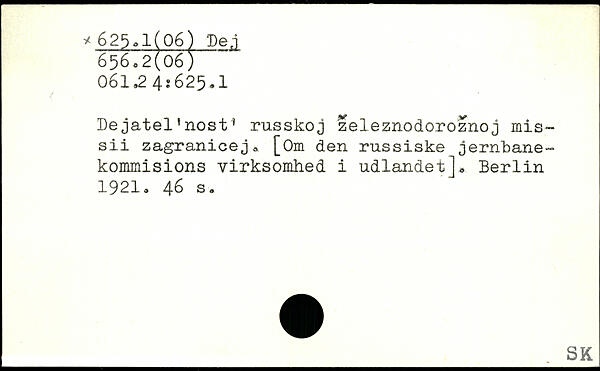 Dejatel’nost’ russkoj zeleznodoroznoj mis-sii zagranicej. [Om den russiske jernbane, kommisions virksomhed i udlandet].