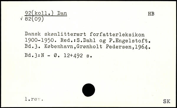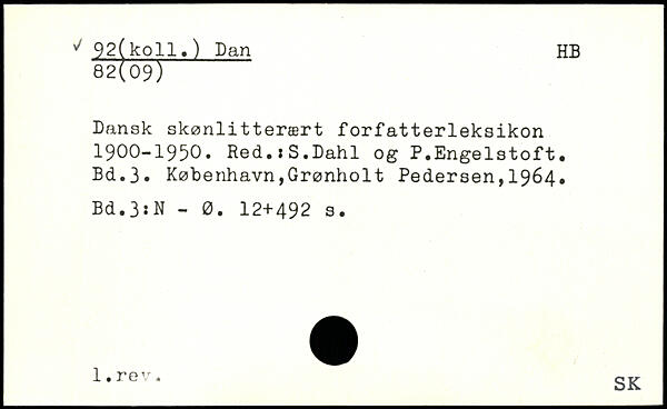 92(koil,) Dan HB Dansk skønlitterært forfatterleksikon 1900-1950. Red.,S.Dahl og P.Engelstoft.