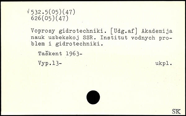 Voprosy gidroteohniki. [Udg.af] Akademi ja nauk uzbekskoj SSR. Institut vodnych problem i gidroteohniki. Taskent 1963- Vyp.13- ukpl.