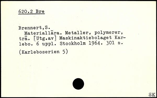 Materiallära. Metaller, polymerer, trä. [Utg.av] Maskinaktiebolaget Karlebo.