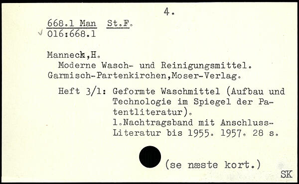 Moderne Wasch- und Reinigungsmittel. Garmisch-Partenkirchen,Moser-Verlag. Heft 3/l: Geformte Waschmittel (Aufbau und Technologie im Spiegel der Patentliteratur), 1 ,Nachtragshand mit Anschluss-Literatur bis 1955, 1957.