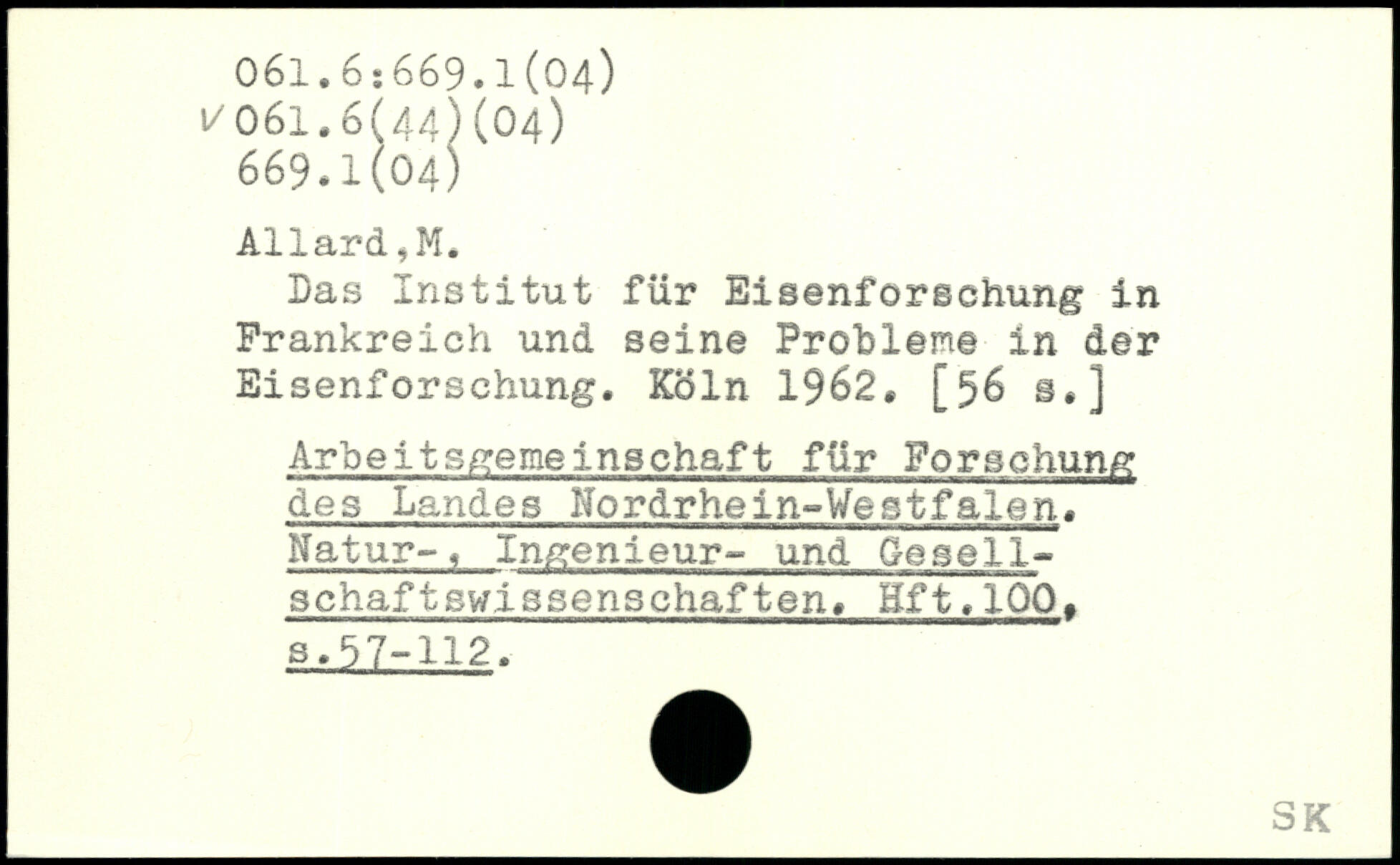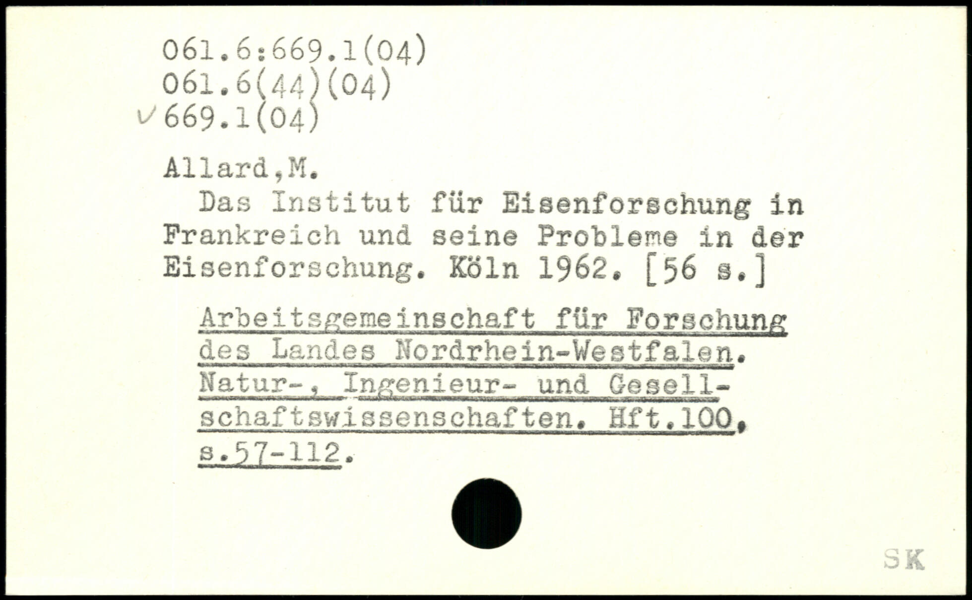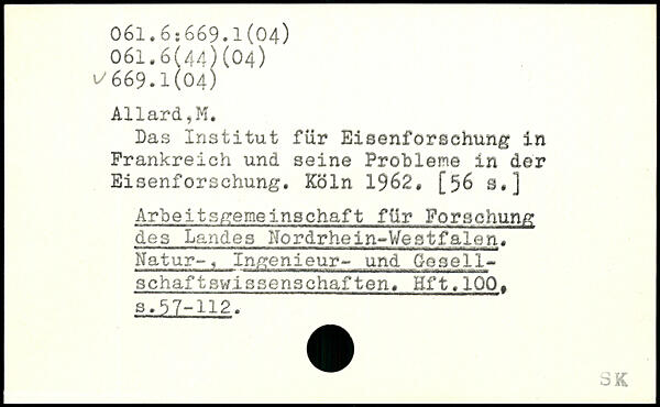 Das Institut für Eisenforschung in Frankreich und seine Probleme in der Eisenforschung.