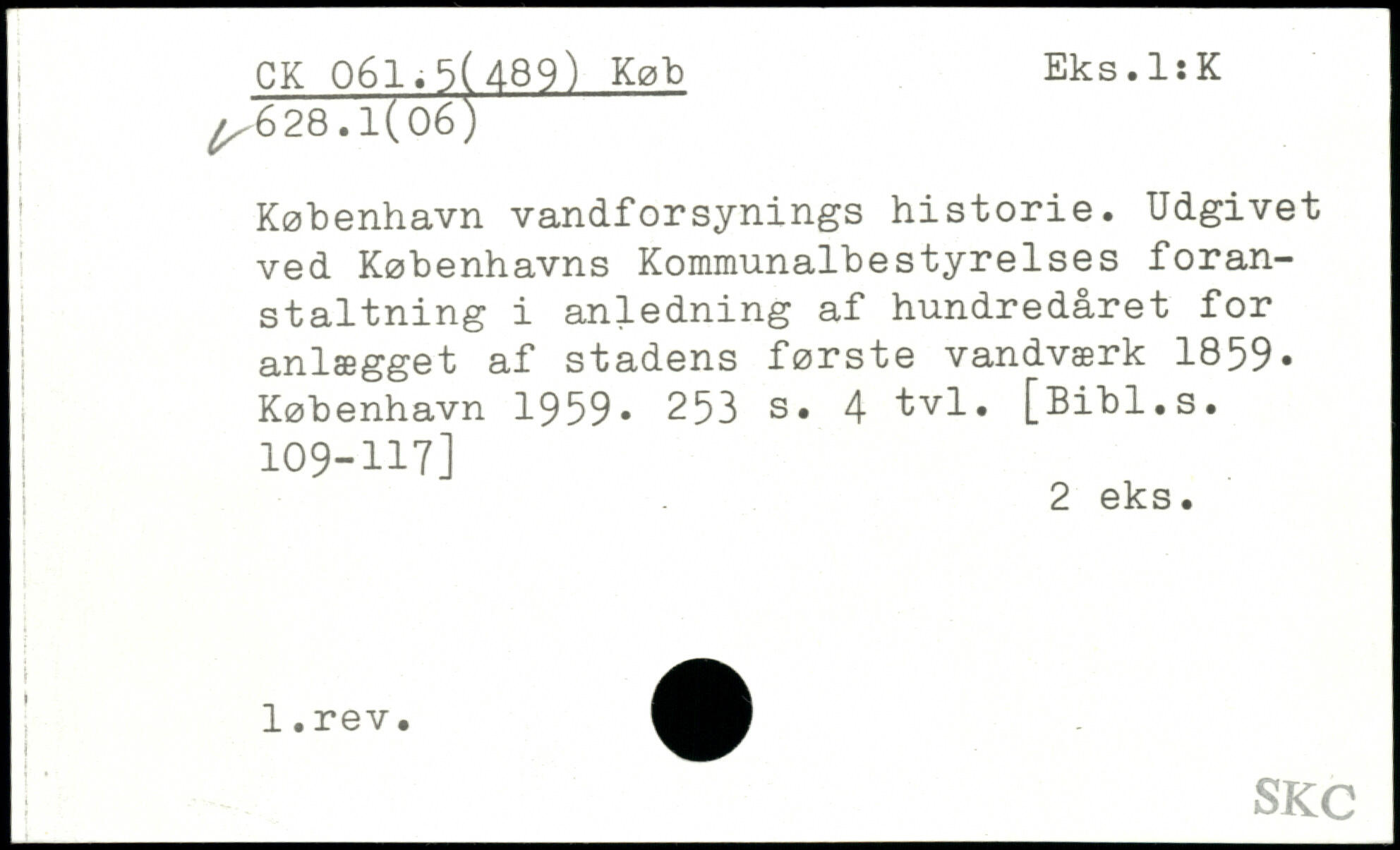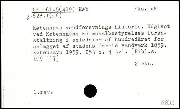 København vandforsynings historie. Udgivet ved Københavns Kommunalbestyrelses foranstaltning i anledning af hundredåret for anlægget af stadens første vandværk 1859.