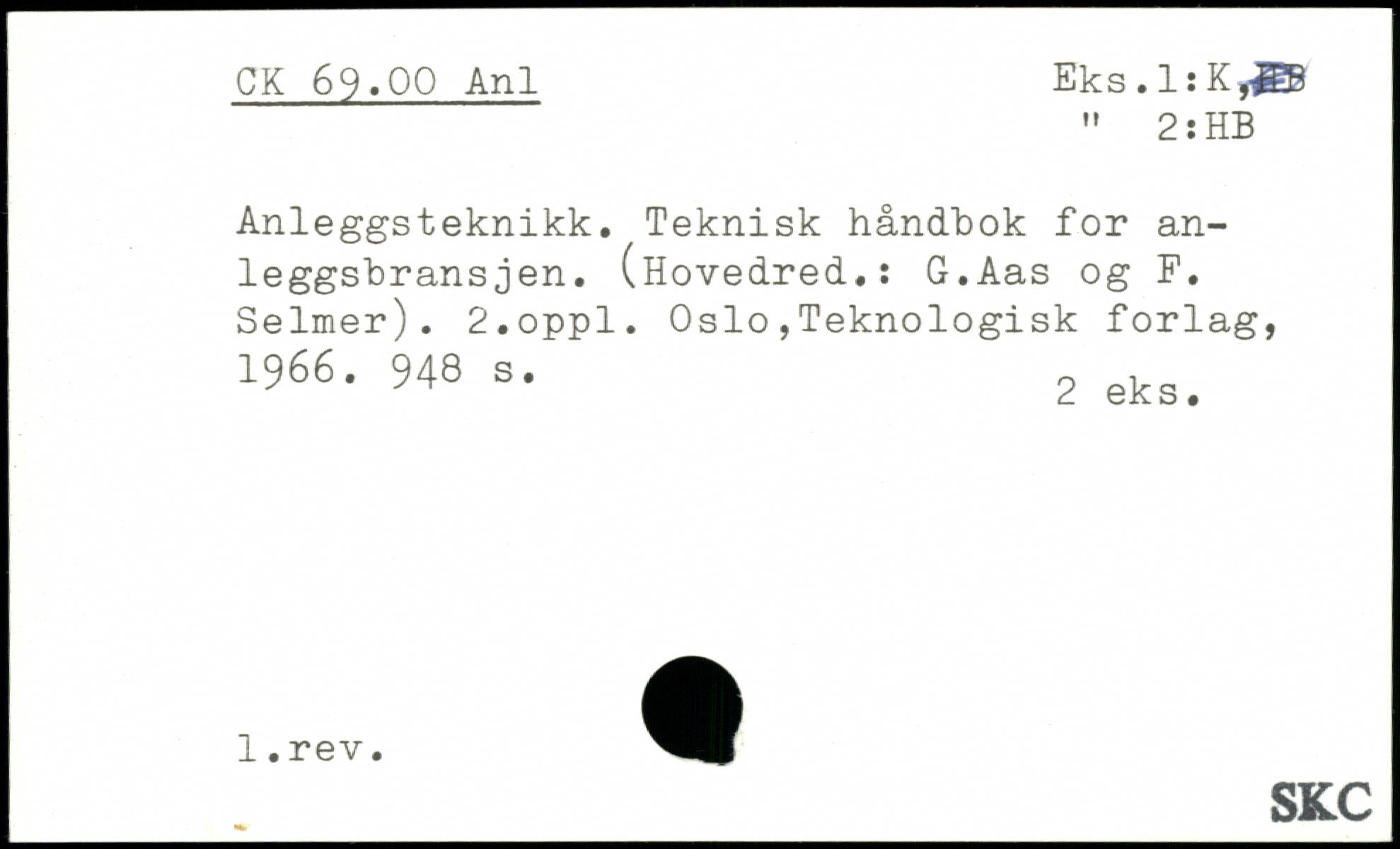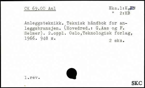 Anleggsteknikk. Teknisk håndbok for an-leggsbransjen. (Hovedred.: G.Aas og F. Selmer). 2.oppl.