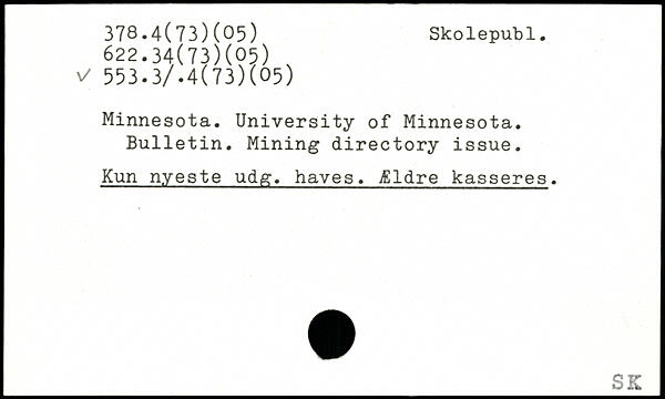 Minnesota. University of Minnesota. Bulletin. Mining directory issue. Kun nyeste udg, haves. Ældre kasseres.