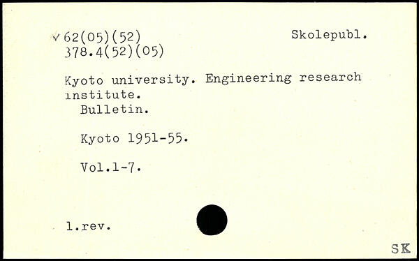 Kyoto university. Engineering research institute. Bulletin. Kyoto 1951-55.